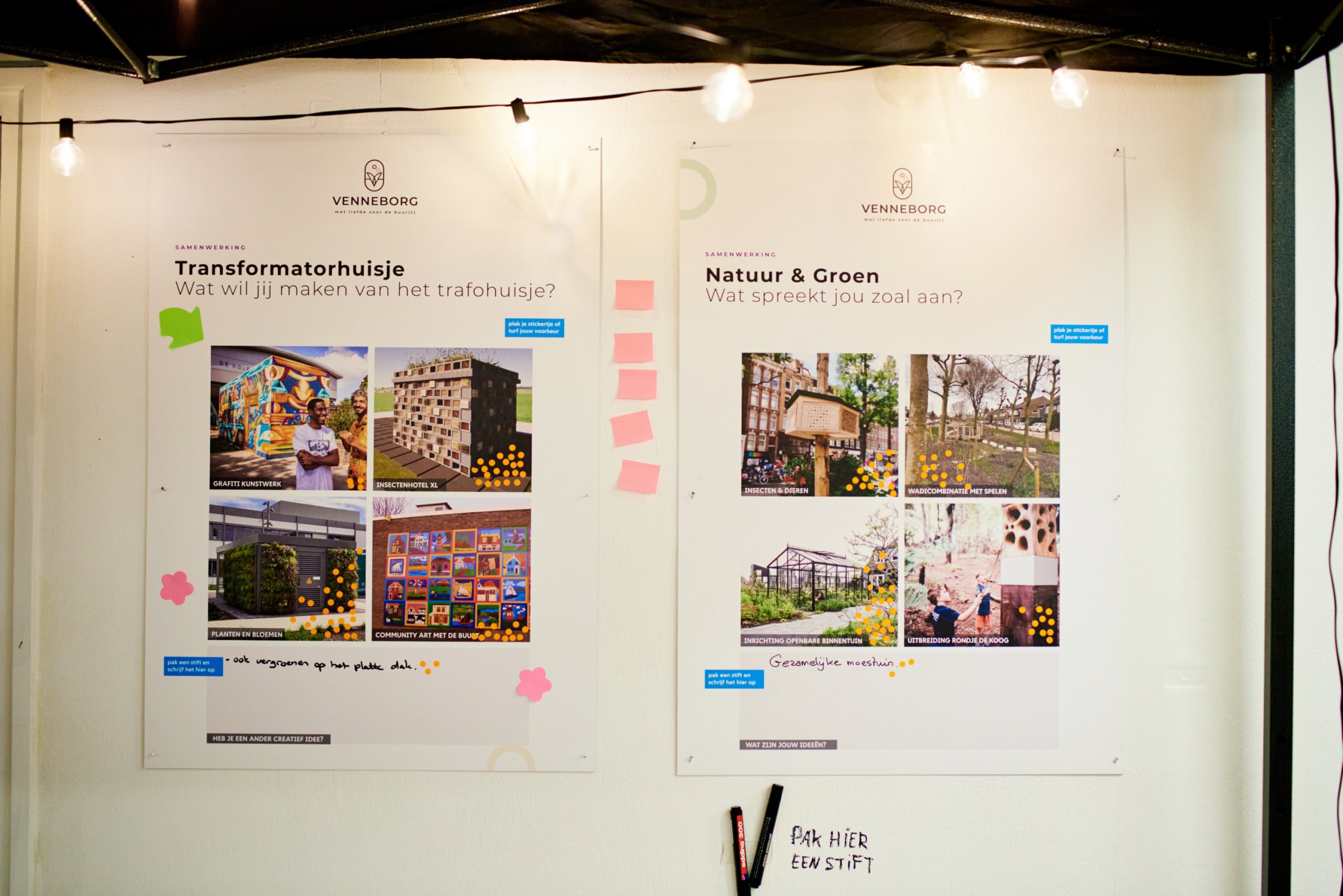 We hebben veel waardevolle input opgehaald. Mensen gaven aan hoe belangrijk natuurlijk spelen is voor kinderen, een groene en gezellige binnentuin, bloemen en planten op het trafohuisje én fijne zitplekken in zowel de zon als schaduw. Mooie wensen waar we graag mee aan de slag gaan!